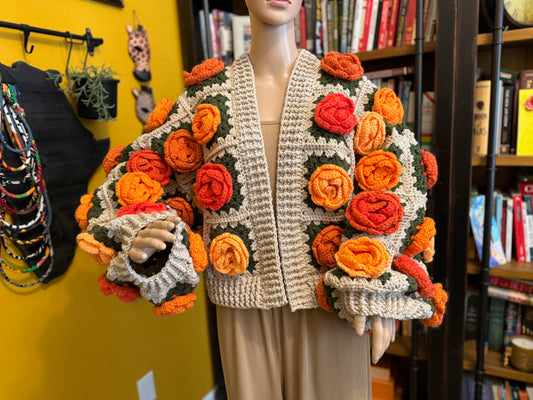 Rose Garden Crochet Cardigan - Autumn Sunset Ombre Roses
